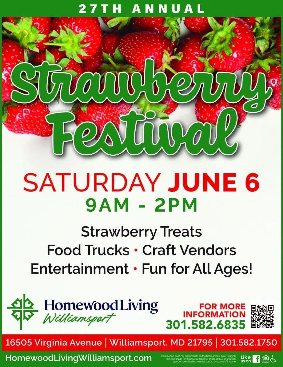 Back to All Events 27th Annual Strawberry Festival Saturday, June 6, 2026 9:00 AM 2:00 PM Google Calendar ICS